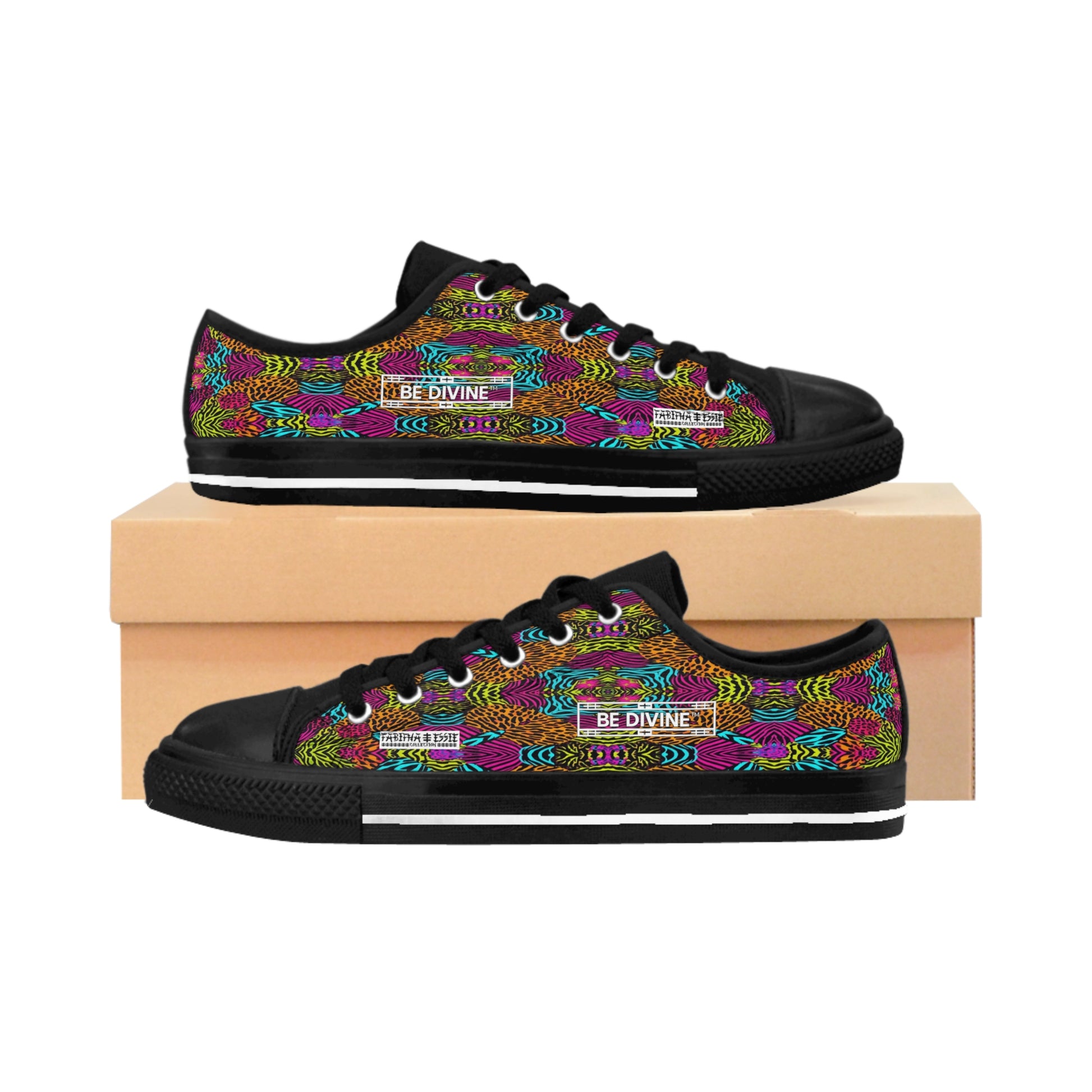 The BE DIVINE™ “Aurora Mirage” Sneakers by Tabitha Essie redefine streetwear chic with a symphony of neon hues and kaleidoscopic symmetry. Designed for women who lead with confidence and grace, this pair turns every step into a statement of empowered beauty.