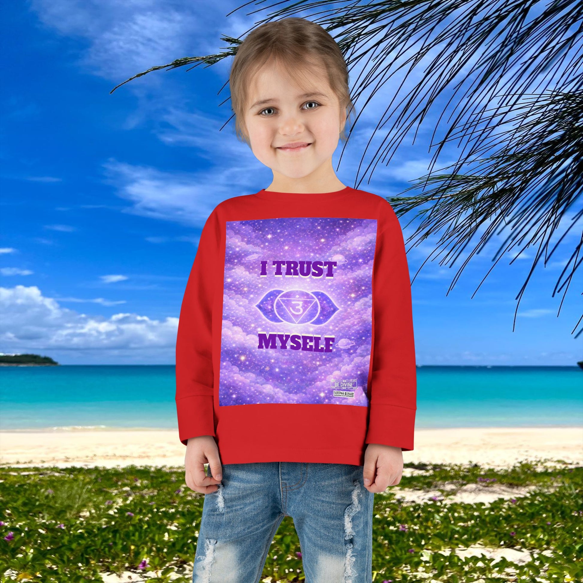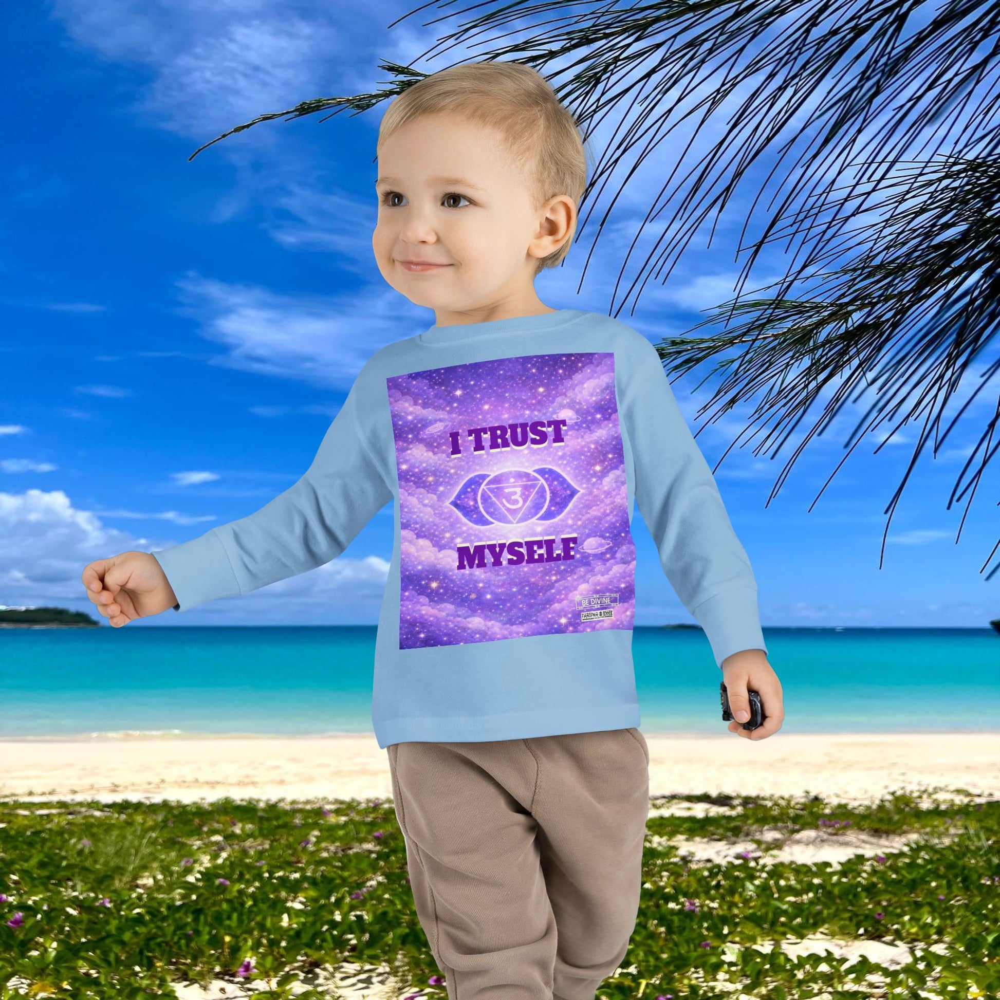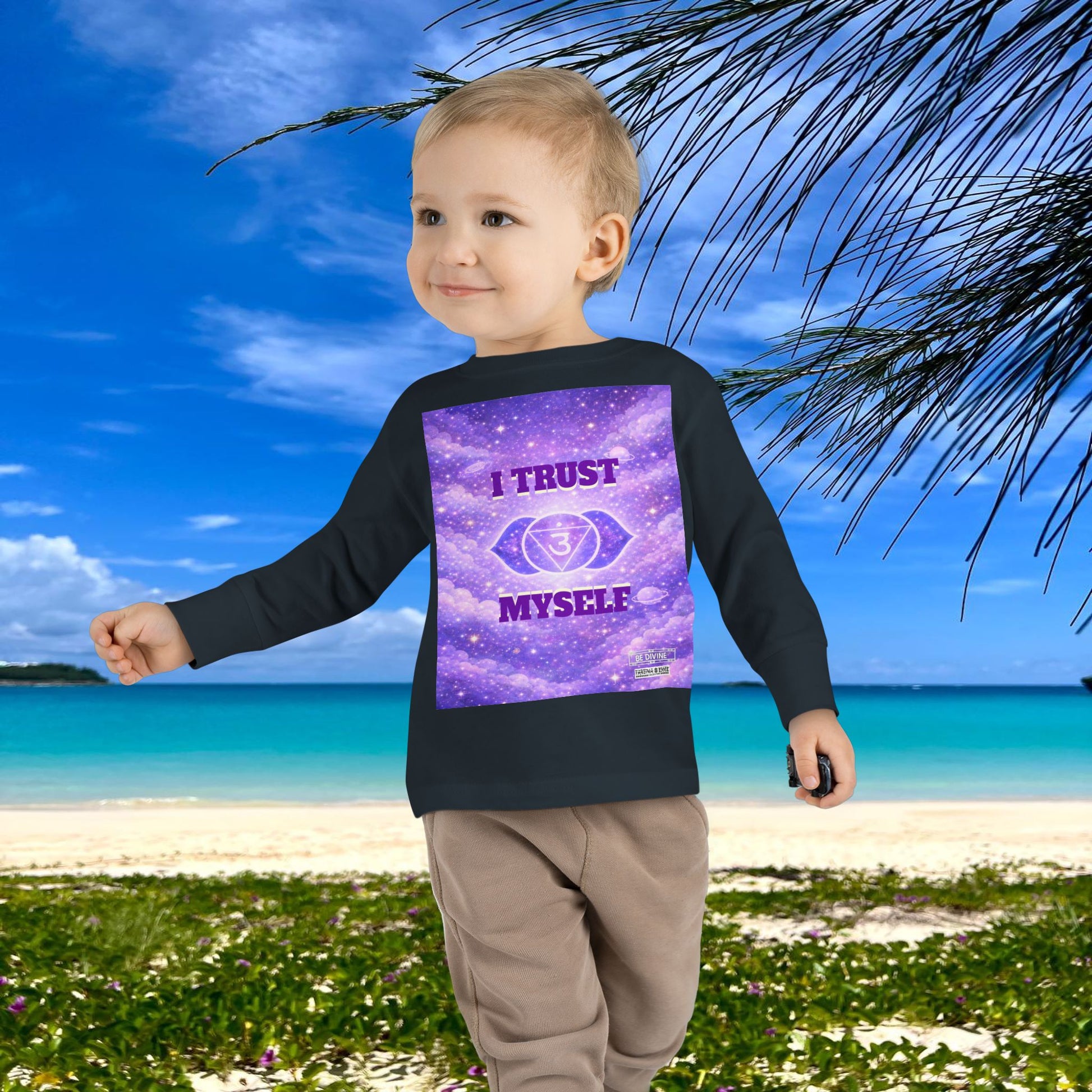This Third Eye Chakra-inspired toddler long sleeve tee is designed to nurture trust in inner knowing, imagination, and thoughtful awareness. The gentle affirmation helps toddlers feel confident listening to themselves, encouraging curiosity, focus, and self-trust as they grow.